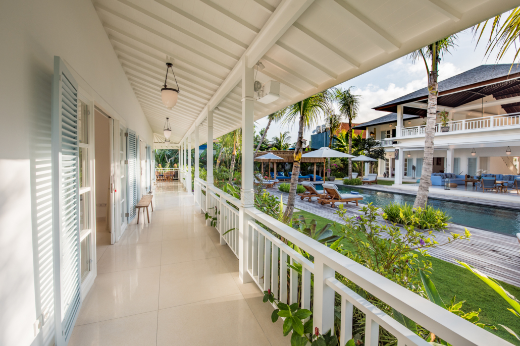 It has the mix of a modern colonial mansion with very high ceilings in combination with a beach house. In addition to its 4 bedrooms in the main building, it has a bunk room and a bedroom with connecting doors in the guesthouse, designed for maximum privacy for families with children. In the guesthouse there is also a fully equipped gym.
